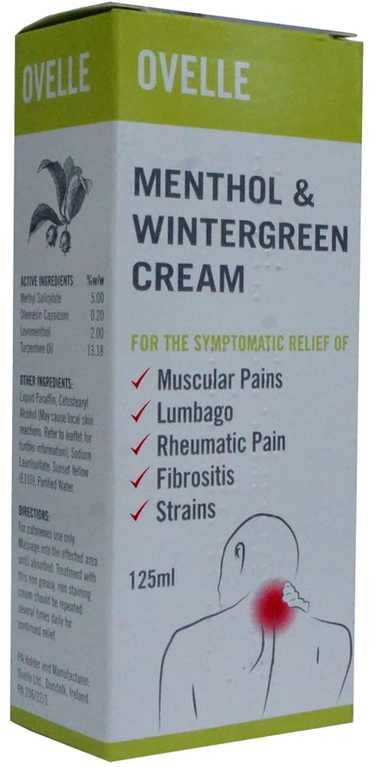 Ovelle Menthol & Wintergreen Cream | Relief From Muscular Pains, Lumbago, Rheumatic Pain, Fibrositis, And Strains | Non-Greasy & Non-Staining | 125 Ml