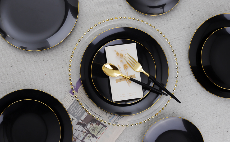 Nervure 100pcs Black And Gold Plastic Plates 10 25 Inch | Desertcart Hungary