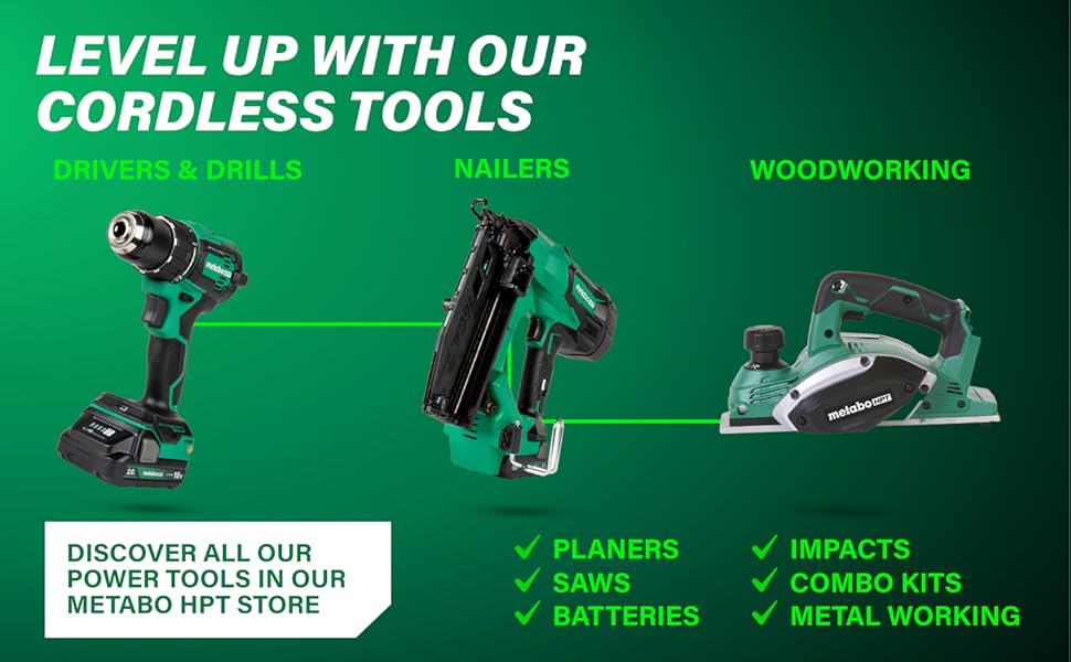 The Metabo HPT 18V MultiVolt Cordless Hand Planer combines a powerful 16,000 RPM motor with a 3-1/4 inch cutting width and a lightweight 7.3 lb design. Engineered for precision and portability, it features a battery charge indicator and accepts versatile 18V/36V MultiVolt batteries (sold separately). Backed by a lifetime lithium-ion tool warranty, this planer is built for professionals and serious DIYers seeking reliable, cordless woodworking performance.