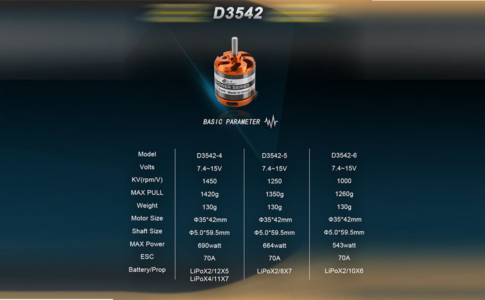The FLASH HOBBY D3542 1250KV Brushless Motor delivers 664W max power with a high-torque 14P12N magnet design, precision balanced rotors, and durable CNC aluminum bell. Optimized for mini multicopters and RC aircraft, it supports 70A ESC and recommended 10*6 or 11*5 propellers, ensuring efficient, high-performance flight with heat-resistant copper windings and easy 3.5MM banana plug connectivity.