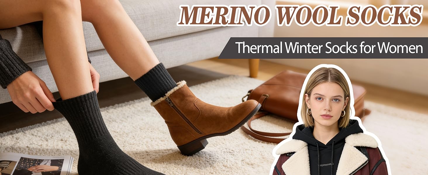 Merino Wool Thermal Socks for Womens Walking Winter Warm Thick Cosy Boot Crew Comfy Ladies Hiking Work Socks 5 Pack