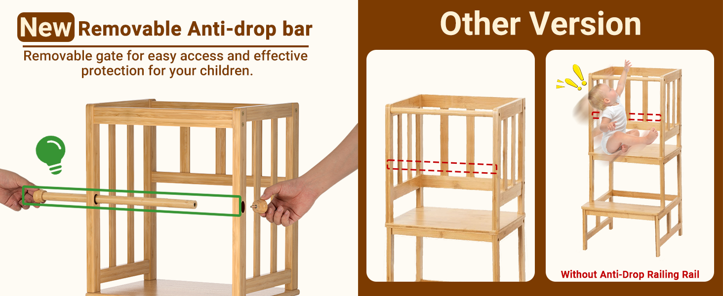 Fantastic product!The assembly process is easy and very well illustrated within the instructions. It is strong and sturdy and our 18month old easily climbs in and out. The design allows for safe use and the non-slip surfaces ensure no issue climbing. The removable safety rail design is such that toddler cannot remove it, nor escape from the containment area.Small enough to not be in the way, large enough to help mommy cook on the kitchen counter.The base is stable and even with toddler over reaching it does not topple over.The customer service is absolutely impeccable and although there was a very minor issue with one part, the part was replaced no questions asked.Never have I seen customer service with such pride!
