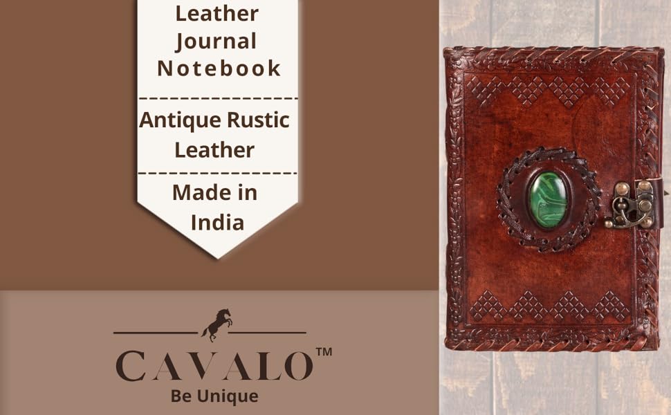 The CAVALO Be Unique Leather Diary is a handcrafted, compact 5x7 inch journal featuring 240 thick, non-bleed plain pages ideal for writing, sketching, and scrapbooking. Its vintage leather cover with a distinctive green stone and antique lock closure offers both style and privacy, making it a perfect gift for creatives and professionals who value unique, portable, and elegant stationery.