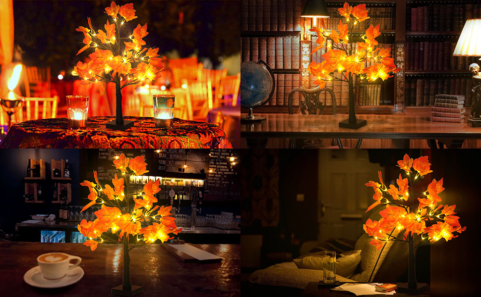 This 2-pack of 20-inch artificial maple trees features 48 warm white LED lights powered by either 3 AA batteries or USB. With bendable branches and realistic autumn-colored leaves, these versatile decorations are perfect for adding cozy fall ambiance to desktops, parties, or any indoor space. Easy to assemble and designed for flexible styling, they make ideal seasonal decor or thoughtful gifts.