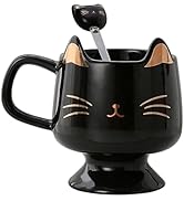 YuwuCat Mug Cute Coffee Mug gifts for cat lovers Ceramic Cup, Novelty Mug with Lid and Stainless Steel Spoon, Christmas Birthday Gifts Present for kids Women Girls (Black)
