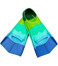 The Fadgesy Swimming Training Fins are designed to enhance swimming practice for children. Crafted from comfortable silicone, they promote shorter, faster kicks and improve ankle flexibility. The fan-shaped foot pocket ensures a snug fit, and the short blade design aids in proper body posture. While some users have reported durability issues after limited use, others appreciate their lightweight nature and ease of use. Overall, these fins are a solid choice for young swimmers looking to improve their technique