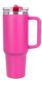 So of course, everybody’s raving about the Stanley cups. I have one however, once I put ice and water in it, it is outrageously heavy this one equally compared to it. It still keeps my water cold still keeps my ice frozen does the same job just as sturdy just a lot lighter weight and the red is fabulous! Plus I loved the price it didn’t break my bank!