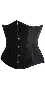 The SZIVYSHI Waist Trainer is a black underbust corset featuring 12 plastic boned supports and a front busk closure for secure shaping. Its adjustable lace-up back allows for a custom fit, enhancing your natural waistline while promoting better posture. Designed with a modesty panel and elegant lace trim, it’s perfect for daily wear, cosplay, or special events, delivering both comfort and a dramatic hourglass silhouette.