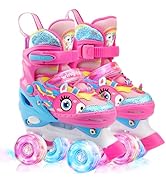 These roller skates are absolutely adorable and perfect for beginners! The unicorn and rainbow design is vibrant and eye-catching, and the light-up wheels add an extra layer of fun that my child can’t get enough of. I love that the size is adjustable, so they’ll last as my kid grows, and the secure straps and sturdy build give me peace of mind while she skates around. They roll smoothly and feel very well made for the price. My daughter was so excited when she opened them and has been skating around the house nonstop. These skates made a perfect birthday gift and I would absolutely recommend them to other parents!