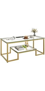 This modern rectangular coffee table features a clear tempered glass top paired with a sturdy gold metal frame, offering a stylish two-tier design measuring 39.4x18.9x17.7 inches. Built for durability and easy maintenance, it’s perfect for living rooms, bedrooms, or offices seeking a sleek, functional centerpiece.