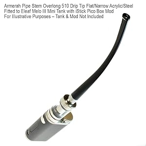 The Armerah Pipe Stem Overlong 510 Drip Tip is a 135mm tall, slim acrylic mouthpiece featuring a flat tip and narrow bore for smooth draws. It fits all standard 510 push-in atomizers and tanks, secured by a durable stainless steel base and includes a new single seal for airtight performance.