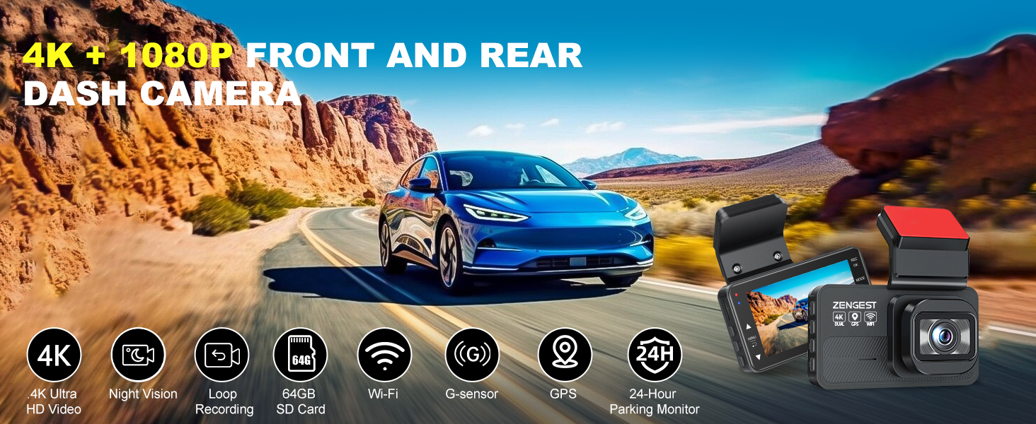 Zengest4k Dual Dash Cam Front And Rear Wi Fi Gps | Desertcart Hungary