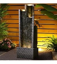 This 59" tall waterfall fountain features a modern faux slate design with built-in LED lighting and a durable resin construction. Perfect for both indoor and outdoor use, it delivers soothing water sounds and a striking visual centerpiece for patios, gardens, decks, or porches. The package includes an adjustable pump and transformer, backed by a 1-year warranty and hassle-free returns.