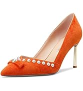 Castamere Women's Block Heels are 4-inch pointed-toe slip-on pumps featuring a durable rubber sole and classic block heel design. Crafted for both comfort and style, these shoes offer a sleek silhouette ideal for professional and social settings, making them a versatile addition to any millennial manager’s wardrobe.