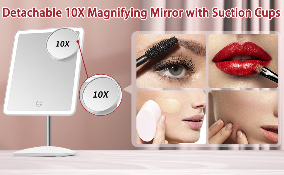 DESCHEN 2000mAh Rechargeable Makeup Mirror with Lights, 13.2" x 7.5" Large Lighted Makeup Mirror with 3 Color Lights and Detachable 10X Magnification,