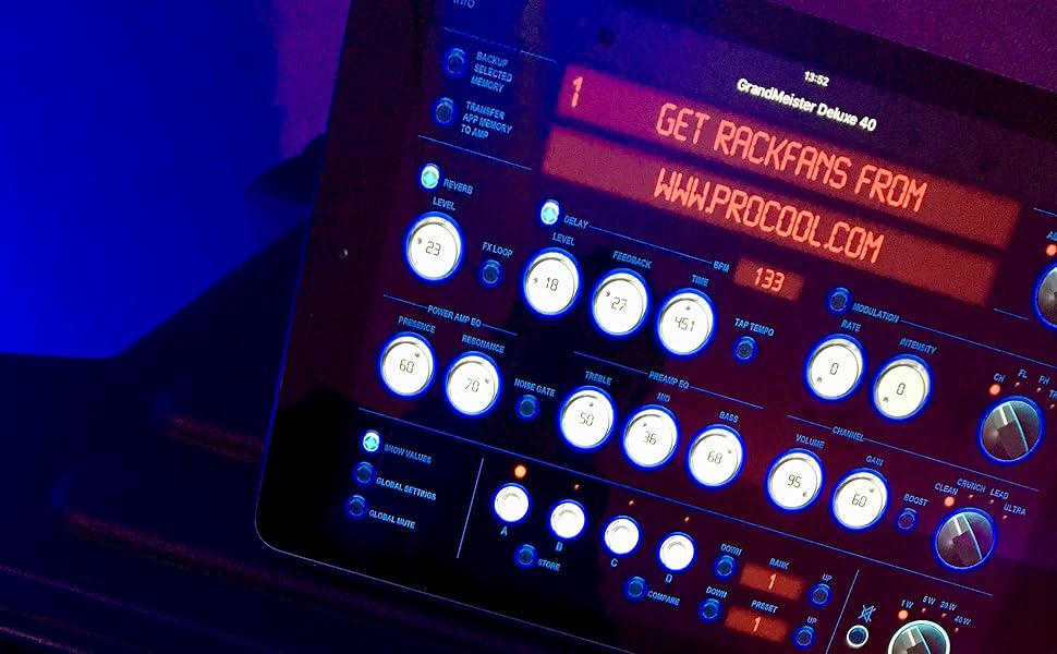 PROCOOL HK640B / 1U Rack Mount Intake LED Fan/designed for Hughes & Kettner Grandmeister and Tubemeister Guitar Amps